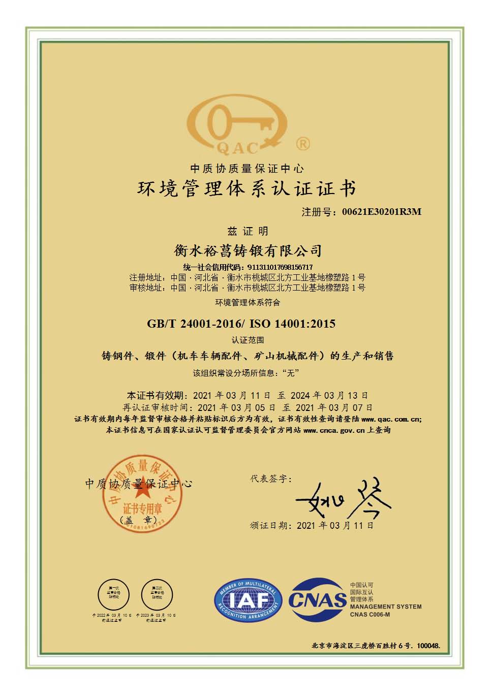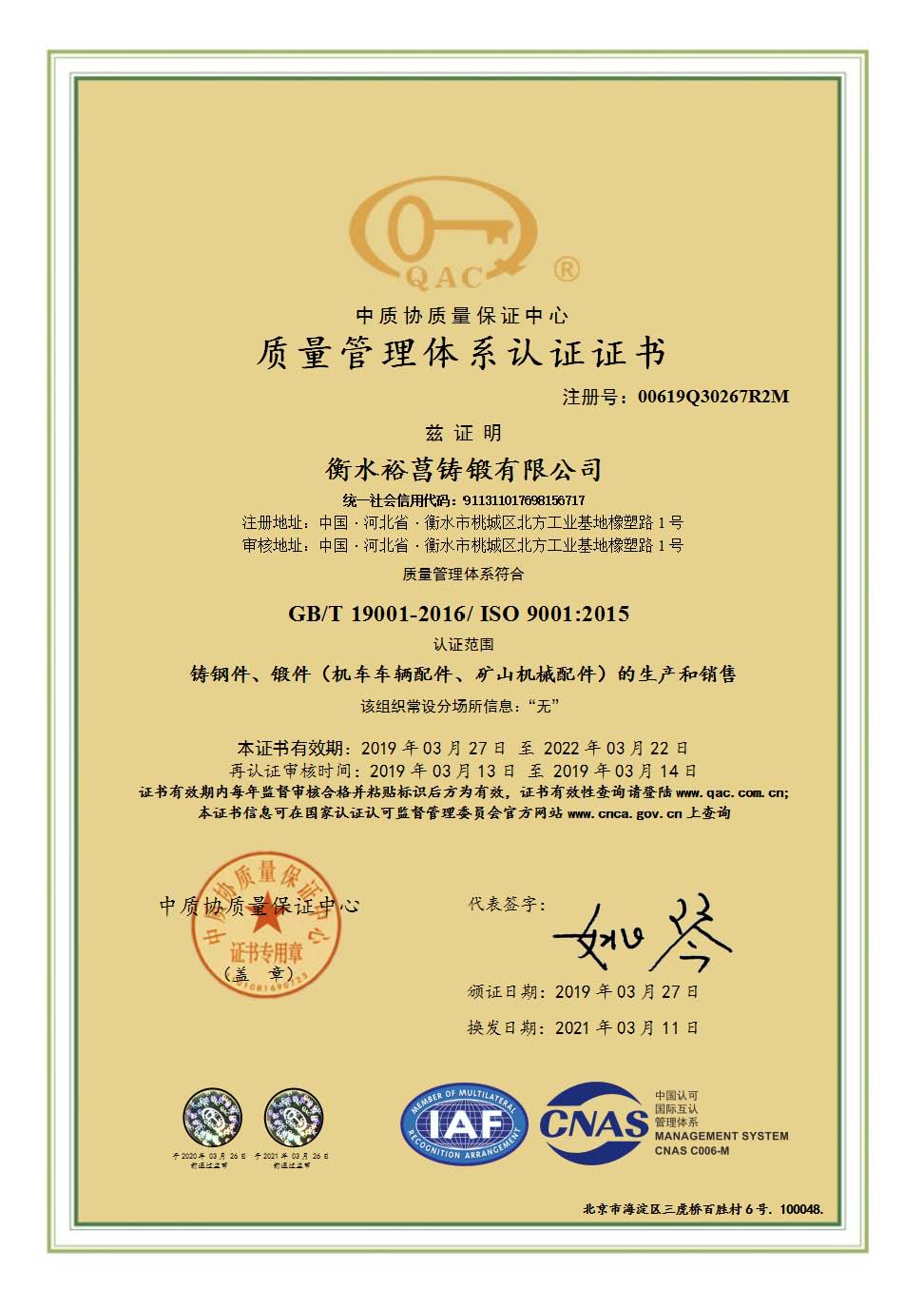 衡水中裕鐵信裝備工程有限公司Hengshui Zhongtiejian Casting & Forging Co., Ltd