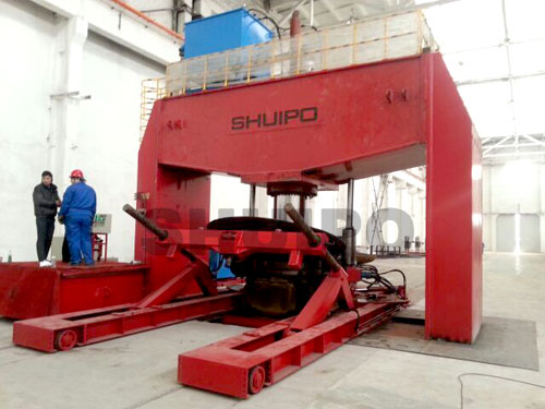 壓鼓機(jī)是無(wú)胎旋壓封頭的第一步,板料經(jīng)壓鼓機(jī)在凸凹模具之間壓制后,成為圓凹形的封頭胚料。把數(shù)控觸摸屏設(shè)置參數(shù)后,胚料的平移、旋轉(zhuǎn)、傾斜等動(dòng)作均可自動(dòng)完成,壓鼓過(guò)程無(wú)需人工干涉,可實(shí)現(xiàn)各種工藝要求。