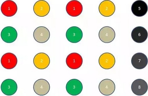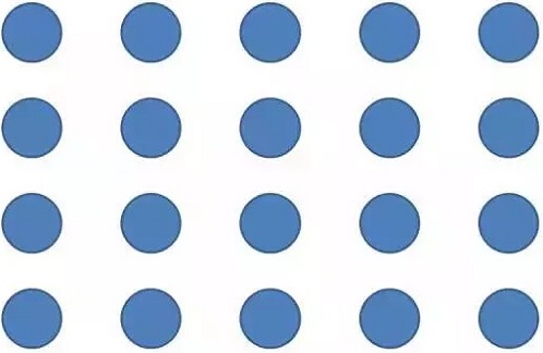 沖針數(shù)量的選擇的原則是,如何用最少的沖壓次數(shù)完成網(wǎng)孔零部件的制作,而非在一個(gè)工位上布入最多的沖針。以下為一個(gè)簡(jiǎn)單的實(shí)例來說明,如圖2所示為1個(gè)20孔的零部件,如果采用單孔打擊的話,需要20次完成針對(duì)這個(gè)零部件,就會(huì)產(chǎn)生很多種群孔模具的排布方式,譬如2×2布局(圖3)可以一次性完成4個(gè)孔的沖壓,3×2布局(圖4)可以一次性完成6個(gè)孔的沖壓,但是經(jīng)過模擬我們發(fā)現(xiàn)一個(gè)有趣的現(xiàn)象:2×2布局實(shí)際上只需要進(jìn)行4次群孔沖和4次單孔沖,就可以在8次內(nèi)完成這個(gè)零部件的加工;而2×3布局卻需要2次群孔沖和8次單孔沖,即需要10次沖壓才能完成該零部件的加工。將這種案例擴(kuò)大到一個(gè)有著數(shù)千網(wǎng)孔的零部件的話,那么就更容易看出,合理的群孔模具的排版所帶來的巨大的效率提升。