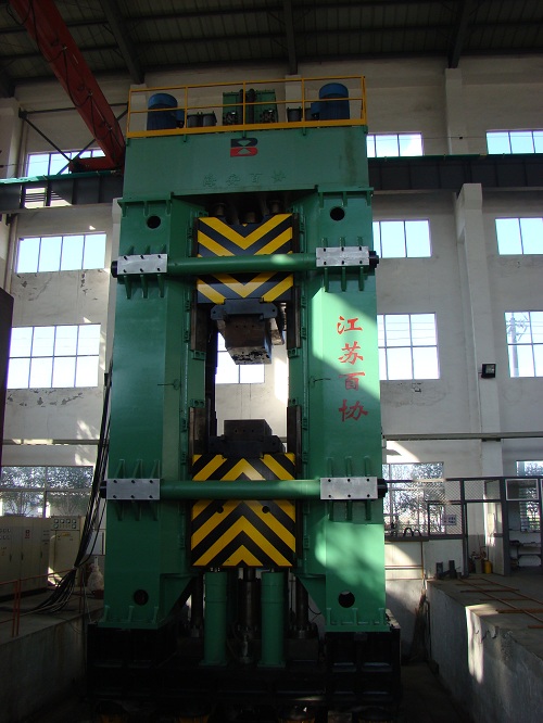 近日,中國首臺400KJ數控全液壓對擊模鍛錘在江蘇百協精鍛機床有限公司研制成功,結束了國內大型精密模鍛成型設備完全依靠進口的歷史。 該產品是大型自動化鍛造生產線的核心裝備,其最大冷擊力達到1.6萬噸,是目前世界上同類產品中最大規格的設備,可廣泛應用于汽車、軌道交通、工程機械、礦山機械、航空航天器械等行業,實現大型關鍵復雜零件的快速成型。該產品具有高效、節能、環保、高可靠等特點,是國家鼓勵優先發展的重大戰略裝備。該產品的全液壓動力驅動系統由結構件油箱、電機、油泵組、蓄能器油缸組件和高度集成的液壓控制系統組成,主要液壓元件和密封件均采用國際最優質品牌產品;產品機架是優質、加厚、加強的鋼板結構件,具有強度高、變形小、穩定性好等特性;等質量的上下錘頭是精鑄的優質合金鋼,具有抗沖擊、耐磨損、機械性能穩定等特點。該產品數字化控制系統采用德國西門子產品,可實現運行狀態自動監控和故障的自我診斷,可實現打擊能量、打擊步序的數字化控制。該產品以上下錘頭等質量、等行程、等速度的懸空對擊,減少設備基礎的大量投資,克服了大型鍛造裝備對周邊環境的振動危害。
