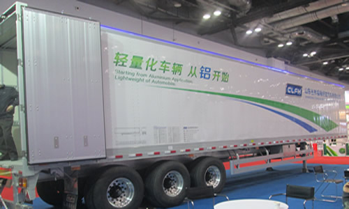 山東叢林福祿好富汽車有限公司產品:鋁合金掛車 據介紹,車廂整體使用鋁合金材料制成、車輛重量為6.8噸、最大載重量為32噸。輕量化車廂對降低油耗、提高運輸效益、節能減排效果顯著。