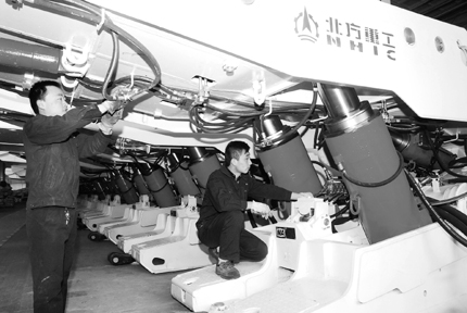 圖為北方重工集團技術人員在對ZY8800高端液壓支架進行調試。