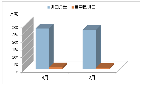 3、美國經濟緩慢復蘇帶動鋼材進口環比持續增長 美國4月就業數據雖然不及預期,但非農數據開始出現了小幅好轉,就業恢復在放緩的情況下,仍舊保持了較好的勢頭。此外,美國房地產市場逐步恢復,但并未出現快速的強勁拉升。整體來說,美國經濟正處于復蘇階段,盡管增速放緩,但仍舊持續恢復。 考慮到國內鋼材市場持續疲軟,而鋼材產量卻始終居高不下,在供需嚴重失衡的情況下,國內鋼鐵企業開始把眼光轉向國際市場,逐步加大對海外市場的鋼材出口力度。在美國經濟緩慢復蘇的帶動下,美國鋼材進口有所增長,自中國進口的鋼材量也呈現上升態勢。 根據美國商務部發布的數據顯示,2012年4月份美國鋼材進口量為271.8萬噸,環比增3.4%,同比增17.6%。從進口來源國和地區看,4月份從俄羅斯和中國的進口量環比增長比較明顯,美國從中國進口鋼材12.9萬噸,同比增長45.9%。鑒于美國目前經濟復蘇狀況,預計后期自中國進口的鋼材量將繼續上升,但由于近期中美貿易摩擦頻發,預計上升幅度不會很大,也可能出現下滑。 圖表3 美國3月和4月鋼材進口量