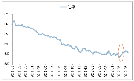 4、人民幣匯率下降支持鋼材出口 由于5月份美元強勢反彈,人民幣兌美元匯率呈現下滑趨勢,單月累計下降0.9%,為2005年7月以來的最大單月貶值幅度。因此,人民幣兌美元走弱也成為刺激我國鋼材出口的一個因素。 圖表4 人民幣匯率走勢