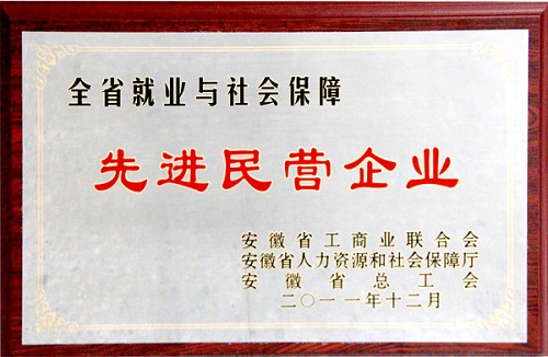 全省就業與社會保障先進民營企業獎牌