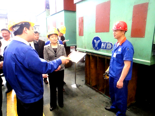 在隨后的座談會上,合鍛公司黨委書記、常務(wù)副總經(jīng)理李安應(yīng)同志匯報了企業(yè)生產(chǎn)經(jīng)營情況,合鍛公司作為國家認(rèn)定企業(yè)技術(shù)中心、國家火炬計劃重點高新技術(shù)企業(yè)以及我省裝備制造業(yè)唯一一家連續(xù)兩次承擔(dān)“高檔數(shù)控機(jī)床與基礎(chǔ)制造裝備”科技重大專項的企業(yè),自主開發(fā)的工作母機(jī)及重大成套技術(shù)裝備先后應(yīng)用于航空航天(神舟飛船)、核電站、西氣東輸、大飛機(jī)制造、軍工等重點工程,為中國民族工業(yè)的發(fā)展作出重要貢獻(xiàn)。近三年,我公司榮獲省部級科技獎勵5項,申請專利130余項,專利授權(quán)百余項,作為液壓機(jī)國家標(biāo)準(zhǔn)起草單位,合鍛先后主持制修訂國家行業(yè)標(biāo)準(zhǔn)23項。