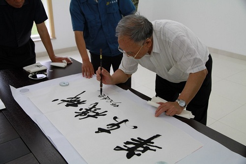 16時,何部長離開車間回到一樓接待室。在接待室,何部長饒有興趣的觀看了集團公司宣傳畫冊和宣傳片,并對相關內容與集團王總進行交流。何部長對本次參觀考察取得的收獲給予了充分肯定,肯定集團公司所取得的成績,同時也勉勵我集團公司員工要繼續努力拼搏共創美好明天。 下午17時,何光遠先生離開公司。臨行前,何先生揮筆題寫“華東機械”四字,以茲勉勵我集團公司今后再創新天地。
