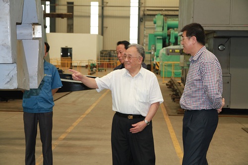 2012年6月15日,原機械工業部部長何光遠在青島市領導的陪同下來到青島華東集團有限公司高新區園區參觀考察。期間,何部長重點參觀了分公司華東機械公司生產車間。 6月15日下午15時,在集團王總陪同下,何部長一行從辦公樓出發,沿著園區泰山一路東行至重工廠房3#門進入車間。 在廠房3#門,何部長認真聽取了王總公司的介紹,并對公司迅猛的發展給予贊揚。在50T操作機前,何部長與王總進行了詳細的交流,對公司生產的操作機產品表現出濃厚的興趣。在裝取料機存放區域,何部長久久駐足觀看,不時詢問王總有關裝取料機的相關信息,并對公司在裝取料機方面取得的碩果給予充分肯定。15時40分,何部長來到動梁動柱加工中心前觀看其運作使用情況,對集團公司在生產設備方面的投入表示贊同,認為大設備的投入提高了公司的生產加工能力,改善了工藝。