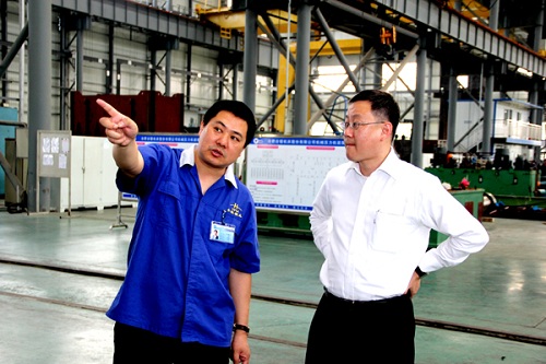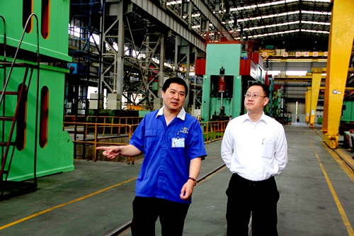 公司董事長嚴建文陪同來賓參觀重型裝配車間