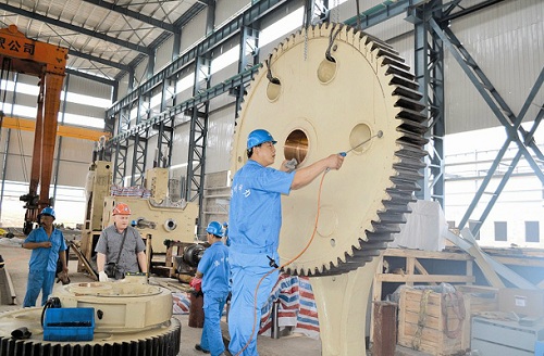 8000噸熱模鍛壓力機近日正式落戶山西翼城縣舜達鍛造股份有限公司,預計9月下旬安裝完畢,10月份開始斯太爾轉向節的試生產工作,屆時將成為全國為數不多、山西省最大、自動化程度最高的一條生產線。圖為俄羅斯專家和專業技術人員正在進行設備安裝。
