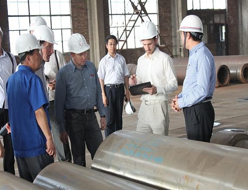 7月16-17日,俄羅斯某重型機械聯合公司總經理等一行五人,來到河北宏潤重工股份有限公司就核電管道進行了為期兩天的商務考察及技術交流。宏潤重工董事長、總經理、技術總監及貿易部成員進行了熱情接待,并陪同外商先后考察了公司的制造車間、生產設備、主要產品和理化檢測中心。17日下午,雙方就核電管道技術協議進行交流座談。 考察期間,外賓充分肯定了宏潤重工的生產能力和創新意識,對宏潤重工世界最大五萬噸液壓機項目的先進性能給予了高度評價,并表示與宏潤重工建立長期合作關系。