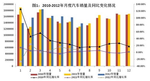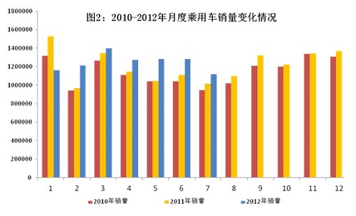 2012年1~7月,我國汽車產銷量雙雙超過1000萬輛,同比分別增長4.8%和3.6%。7月,汽車產銷市場同比保持較高增長。 一、7月汽車銷量同比增長8.2% 據中國汽車工業協會統計,7月全國汽車產銷分別為143.71萬輛和137.94萬輛,同比產銷分別增長10.0%和8.2%;環比分別下降6.2%和12.6%。