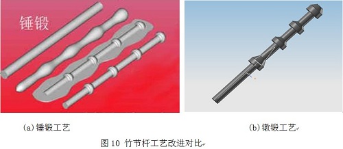 優(yōu)化產(chǎn)品,提高材料利用率 鍛造行業(yè)消耗大量的原材料,以汽車鍛件為例,鋼材費(fèi)用占總成本的60%左右,鋼材的生產(chǎn)需要消耗大量能源,因此優(yōu)化鍛件設(shè)計(jì),提高材料利用率也是節(jié)能的一個(gè)途徑。 ⑴模鍛件制坯工序的優(yōu)化。優(yōu)化制坯工序可以使坯料盡可能與鍛件截面吻合。鏈軌節(jié)鍛件經(jīng)過優(yōu)化,材料利用率提高10%,從飛邊的大小可以看出,改進(jìn)前后,飛邊的大小發(fā)生很大變化。但是,很多時(shí)候,模鍛件的效率更加重要,增加制坯或者制坯工序復(fù)雜耗時(shí),都會(huì)影響效率。通常采取把制坯工序移到外面,使用輥鍛機(jī)或高速?zèng)_床制坯,以節(jié)約主機(jī)有效工時(shí)。