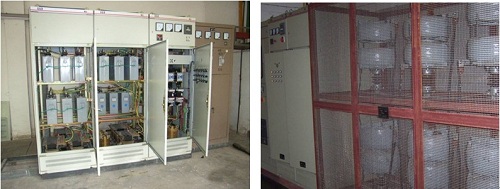 在中頻加熱裝置的平面設(shè)計時,應(yīng)考慮中頻爐電源與低壓配電間的出線距離,距離應(yīng)盡可能縮短,以減少線損,線損不僅浪費了能源,還會產(chǎn)生熱量,加速絕緣層的老化; 在中頻的供電電壓選擇上,盡可能選擇更高的電壓,南汽鍛造對較大功率的中頻電源所配變壓器供電電壓有520v、540v、650v等多種電壓等級。較高的電壓也有利于減少損耗。 ⑵功率因數(shù)補償和諧波治理。中頻爐是感應(yīng)用電器,其功率因數(shù)通常只有85%左右(串聯(lián)諧振的電源要高一些),并且存在各種諧波影響電網(wǎng)的質(zhì)量。當(dāng)公司存在大量的中頻加熱爐時,由此帶來的無功功率占用、電效率下降和用電設(shè)備的故障增多都會影響生產(chǎn)成本。南汽鍛造2007年以前每年因功率因數(shù)低,罰款逾20萬。近年來,公司先后投入力量自主研發(fā)了無源濾波型功率因數(shù)補償裝置,除了具備功率因數(shù)補償功能外,還可以濾掉5次、7次、11次、13次高次諧波,目前已經(jīng)成為中頻爐的標(biāo)準(zhǔn)配置。這些裝置不僅使公司總的功率因數(shù)提高到94%,每年電網(wǎng)獎勵10萬元,同時可以減少線路及變壓器的損耗,降低高次諧波對電網(wǎng)的影響,減少用電設(shè)備無端損壞的風(fēng)險。