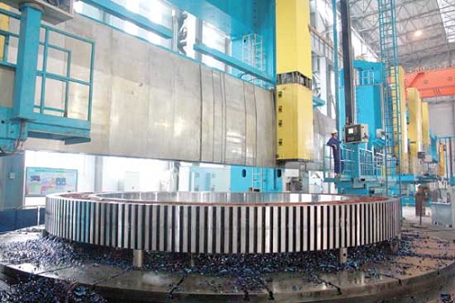 圖為萬力公司立車班職工大倒班搶干超大齒圈。 近日,中國第二重型機械集團公司首件超大齒圈在鑄鍛鋼事業部萬力公司完成精加工,一次性通過聯檢。 齒圈直徑8024mm,重49.5t,齒數多達220齒,是二重有史以來加工過的直徑最大、質量最重的齒類產品,需在萬力12.5m立車上完成大齒徑、內孔及總高等重要尺寸的精加工。由于淬火后表面硬度高,各項尺寸精度要求也非常高,且因沒有適合超大尺寸的測量量具,只能采用間接測量的方式保證各項尺寸精度,通過間斷切削,僅在齒外徑走一刀就要承受36萬次的撞擊,加工難度非常大。 萬力公司在接到該重點任務時正值三季度高溫時段,為搶進度,助推事業部雙高雙優目標的實現,立車班果斷實施大倒班,職工們戰高溫、斗酷暑,配合技術口鉆研加工方法,最終在經驗豐富的老師傅們的帶領下,通過選定合適的刀量和切削參數,按時保質保量地完成了該重點件的精加工。 |