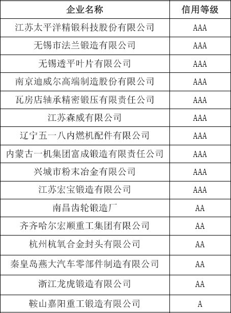 中國鍛壓網消息 (記者韓圖布新 北京報道)第七屆中國國際金屬成形會議上,中國鍛壓協會為在2012年首批“鍛壓行業企業信用等級評價”工作中獲得信用等級的沖壓鈑金企業舉行授牌儀式。中國鍛壓協會行業研究室、教育培訓及專家服務中心主管吳順達女士介紹并宣讀“企業信用等級評價”相關情況及評選結果。由中國鍛壓協會副秘書長齊俊河先生為獲得信用等級的企業授牌。 此次授牌儀式中,獲得信用等級的企業名單如下: