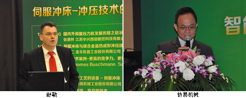 舒勒貿易(上海)有限公司 Mr.Thomas Buschmann為大家帶來了《伺服技術案例—更高的競爭力,更強的靈活性》的主題報告。給大家介紹了舒勒伺服壓力機強大的功能。協易機械工業股份有限公司的報告《先進制造工藝的設備—伺服沖床》,介紹了我國沖壓鈑金行業在世界同行中所處的地位,國內同類企業繁多,低端競爭激烈,企業之間相互壓價,使企業陷入微利狀態。并提出八個方面的措施來加以改進和提高制造業的現狀。最終指出中國鍛壓制造未來的重點要放在智能制造、綠色制造和服務性制造上。