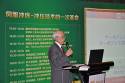 中國鍛壓網消息 (記者韓圖布新 北京報道)第七屆中國國際金屬成形會議暨2012年全國沖壓鈑金廠長會議,9月9日下午,第七屆中國國際金屬成形會議《伺服沖床—沖壓技術的一次革命》會場由中國鍛壓協會沖壓委員會副主任委員單位、恒基創富(佛山)金屬制造有限公司總經理 劉華鴻先生主持,并特別邀請了江蘇中興西田數控科技有限公司董事、總經理 張清林先生、金豐機器工業股份有限公司研發經理 蔡志仁先生、舒勒貿易(上海)有限公司 Mr.Thomas Buschmann、協易機械工業股份有限公司成形技術協理 徐進鴻先生、法格鍛壓機床(昆山)有限公司中國區運營總監 Mr.Larrea、舒勒貿易(上海)有限公司的 Mr.Andreas Koch、江蘇中興西田數控科技有限公司技術顧問 小松勇先生出席會議并作了關于伺服壓力機技術的精彩報告。