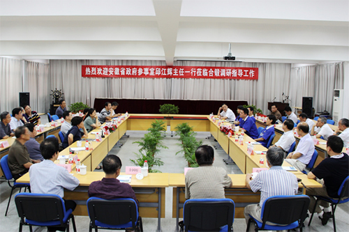 嚴建文董事長向來賓介紹公司發(fā)展情況 邱江輝主任在聽取匯報后,對合鍛的發(fā)展感到驚喜,鼓勵合鍛“創(chuàng)中華民族品牌,造世界精品機床”。同時對合鍛以國家級企業(yè)技術中心為核心,以院士工作站、博士后科研工作站、產(chǎn)學研實體為依托的技術創(chuàng)新體系表示充分地肯定。各位參事一致稱贊合鍛開創(chuàng)了產(chǎn)學研、校企結(jié)合模式的先河。在當前多數(shù)企業(yè)仍在生產(chǎn)成本和產(chǎn)品價格方面尋求價值有限的競爭,合鍛加大科技研發(fā)力量,不斷提升產(chǎn)品的技術含量和附加值,向高科技、高附加值的產(chǎn)品延伸,避免了同行業(yè)產(chǎn)品結(jié)構(gòu)趨同,產(chǎn)品惡性競爭的發(fā)展瓶頸,為企業(yè)的發(fā)展空間和轉(zhuǎn)型升級打開了空間,值得廣泛推廣。 省政府參事室黨組成員、副主任蔣兆晴,副主任朱新中,黨組成員、副主任劉江副巡視員、省文史館副館長余家林陪同調(diào)研。 |