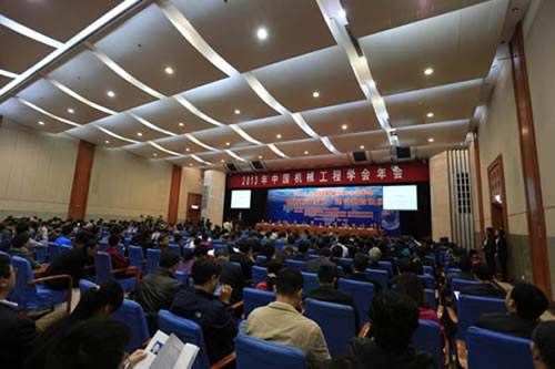 2013中國機械工程學會年會會場 本次年會由中國機械工程學會、合肥市政府聯合主辦,以“創新驅動發展,建設制造強國”為主題。開幕式上,與會領導分別為“中國機械工業科學技術獎”等獎項頒獎。年會上,路甬祥、周濟分別作了題為《“中國制造”的未來》《實施“中國制造2020”,進入制造強國行列》的主旨報告,既分析“中國制造”的使命、全球制造的發展,又對“中國制造”的未來發展提出諸多建設性意見。全國機械領域頂級專家邵新宇、王國彪、陳學東,圍繞數字化工廠、機械工程基礎研究、壓力容器設計制造等話題,與全國及日韓500余名專家、學者、企業家展開深入交流。