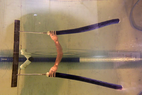 9、2012年10月2日,研究生Baker Potts在新奧爾良大學工程館內拿著一個機器鰻魚原型。這種機器鰻魚或許能夠在危險水域蜿蜒前行,在尋找水雷的時候以極少的能量移動,而且幾乎不會被雷達探測到。