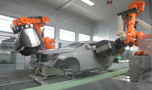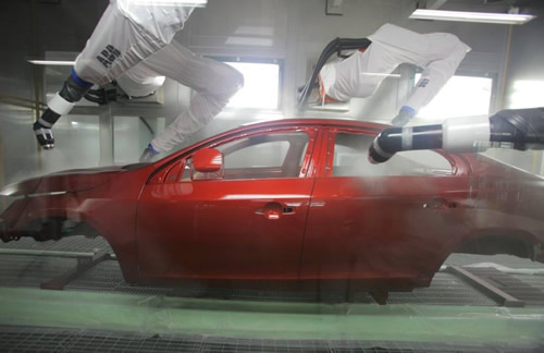 ABB IRB 5500機(jī)器人進(jìn)行車身噴涂
