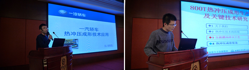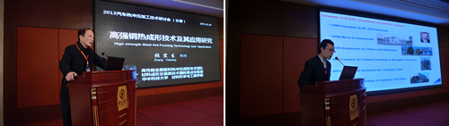 值得一提的是本次臺灣共有12名來自臺灣大學、中國鋼鐵公司、金豐公司以及璋釔鋼鐵公司的代表參加本次會議。從來自臺灣大學陳復國博士的報告“臺灣熱沖壓發展現狀及趨勢”中得知臺灣現在熱沖壓相關配套技術已經非常成熟,之所以發展受到限制是因為臺灣本土的汽車需求量每年才能35萬輛。但是他們的產學研結合非常緊密,并且產學研的合作方式也值得我們大陸來借鑒。而來自德國Schuler公司的銷售經理貝倍先生則從“熱成形線生產系統解決方案”為題,詳細闡述舒勒在此方面的領先技術。