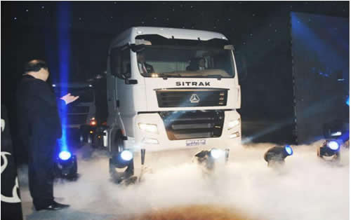由中國重汽與德國曼(MAN)公司合作推出的中國首款高端重卡——SITRAK重卡在中國重汽濟南商用車公司正式下線。