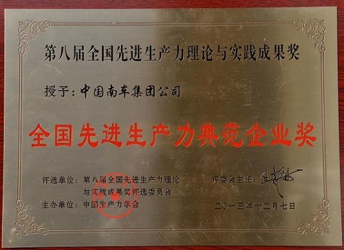 12月7日,由中國生產力學會主辦的“第八屆全國先進生產力理論與實踐成果獎”頒獎典禮在北京舉行。中國南車榮獲“全國先進生產力典范企業獎”,公司董事長鄭昌泓榮獲“全國先進生產力杰出人物獎”。