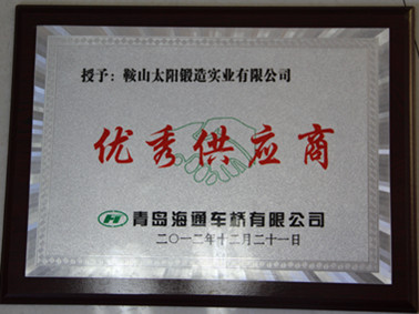 ,青島海通車橋有限公司年度供應商采購會議在成都召開,鞍山太陽鍛造實業有限公司被評為年度“優秀供應商”。