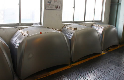 在經(jīng)過(guò)層層沖壓及質(zhì)檢工序后,零件被有序的排列,等待送往焊接車(chē)間。
