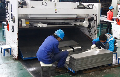 正在進(jìn)行的,是小件的切割落料工序,以便為之后的沖壓工序提供大小合適的板材。