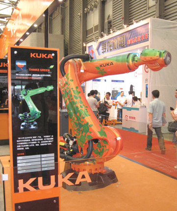 8月22日,德國庫卡公司于首次亮相在2013上海國際汽車制造技術與設備及材料展覽會(AMTS),通過全面展示其生態智能和全能高效性的機器人,為汽車制造技術的升級和可持續發展提供創新的自動化解決方案。 在這次展會上,庫卡展出新款“綠色”KRQUANTEC機器人系列中的全能型機器人KR180R2500extra和KR210R2700extra,憑借其顯著的流線型外觀設計、生態智能的功能、高效精準的操作,成為本次展會上的一個亮點,充分顯示了庫卡機器人的創新自動化理念。 庫卡機器人(上海)首席運營官鄒濤表示:“庫卡作為工業機器人制造的領導者,始終堅持可持續發展和科技創新的理念,本次展出的新款機器人和節能增效的自動化解決方案,相信能夠為提高汽車零部件生產的自動化水平,以及推動中國汽車行業的不斷發展起到積極作用。” 此次展出的新款KRQUANTEC機器人系列,能夠在保持庫卡機器人高性能品質的同時,還擁有創新型的低碳環保特性。新款KRQUANTEC機器人系列自身減重最高至160公斤,最高減重達12%,建立了能量供應與負載之間能效的新標準。其次,從制造到處理的每一個環節對節能環保意識的體現,使得該機器人系列減少對能源消耗多達50%,建立了節能和生態的新標準。另外,該款機器人系列100%使用智能電池管理,電池壽命更長,并且持續減少特殊廢物。圖為庫卡機器人(上海)有限公司在展示庫卡綠色機器人。