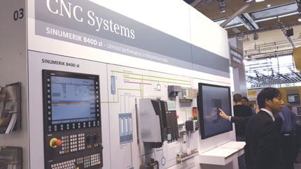 9月16日,機(jī)床行業(yè)最重要的國(guó)際展會(huì)———EMO(漢諾威歐洲機(jī)床展)在德國(guó)漢諾威開(kāi)展。據(jù)主辦方介紹,今年的展出面積為18萬(wàn)平方米,來(lái)自43個(gè)國(guó)家的2133家企業(yè)參加展示,其中兩成來(lái)自亞洲。歐洲機(jī)床工業(yè)協(xié)會(huì)相關(guān)負(fù)責(zé)人在開(kāi)幕當(dāng)天的新聞發(fā)布會(huì)上表示:“EMO的重要性不在于規(guī)模,而在于高端的展品,企業(yè)會(huì)將最新技術(shù)在展會(huì)上展示。” 記者實(shí)地走訪后發(fā)現(xiàn),機(jī)床制造商對(duì)產(chǎn)品質(zhì)量的追求已經(jīng)不再局限于精度和可靠性,而是開(kāi)始立足于智能解決方案,融合信息技術(shù)和機(jī)器人技術(shù)的一體化機(jī)床蔚然成風(fēng)。各個(gè)機(jī)床跨國(guó)公司的高層也熱衷于向媒體宣傳4.0時(shí)代,即第四次工業(yè)革命。顯然,這是用戶需求升級(jí)并通過(guò)市場(chǎng)鏈條傳導(dǎo)至設(shè)備制造商的結(jié)果。 什么是智能裝備?中國(guó)工業(yè)報(bào)記者在展會(huì)前夕和展會(huì)期間采訪了幾家非常有代表性的機(jī)床主機(jī)和功能部件制造商,從中或可看出一些端倪。 西門(mén)子:數(shù)控系統(tǒng)與機(jī)器人集成 西門(mén)子并不制造機(jī)床,但機(jī)床行業(yè)無(wú)人不知西門(mén)子大名,原因很簡(jiǎn)單,西門(mén)子生產(chǎn)的數(shù)控系統(tǒng)在全球首屈一指,而數(shù)控系統(tǒng)被稱為機(jī)床的“大腦”。 在中國(guó)市場(chǎng),盡管近年來(lái)國(guó)產(chǎn)高端機(jī)床進(jìn)步很大,但這些機(jī)床配備的數(shù)控系統(tǒng)不是發(fā)那科,就是西門(mén)子840D。9月13日,記者在位于德國(guó)埃爾蘭根的西門(mén)子工廠采訪期間了解到,西門(mén)子已經(jīng)推出針對(duì)中國(guó)市場(chǎng)的808系統(tǒng),銷售情況不錯(cuò)。在EMO上,西門(mén)子還推出了808D升級(jí)版,但這并不是西門(mén)子最大的變化。 在本屆漢諾威國(guó)際機(jī)床展覽會(huì)上,西門(mén)子驅(qū)動(dòng)技術(shù)集團(tuán)與庫(kù)卡機(jī)器人有限公司宣布雙方將展開(kāi)全面業(yè)務(wù)合作。合作的主要內(nèi)容是把庫(kù)卡機(jī)器人與西門(mén)子裝載機(jī)床數(shù)控解決方案進(jìn)行集成。