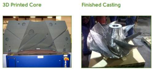 ExOne的產品,基本原理是用特殊的粘接劑,把石英砂逐步打印成可供鑄造的模具。傳統的鑄造如果想要進行鑄造,需要的工序和過程非常的麻煩,需要制作砂型、砂芯等等,流程長投入大。在產品原型開發的過程中,比如發動機的缸體、汽車變速箱等等,都需要先進行試制,但是傳統的過程從周期到成本都很高。而ExOne的設備,則能夠直接用噴射粘結劑的方式打印出鑄造的模具就進行試制,而一旦發現問題,修改好圖紙再重新打印一個就是,極大的提高研發的效率。所以在德國,包括大眾、奔馳的汽車廠都是ExOne的客戶。