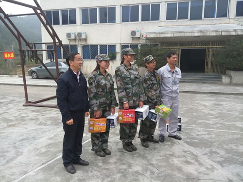10月27日下午,東風(fēng)鍛造有限公司總經(jīng)理夏世維、黨委書(shū)記孫必祥專(zhuān)程到十堰軍分區(qū)民兵訓(xùn)練基地,看望慰問(wèn)該公司正在參加民兵軍事訓(xùn)練的員工,并為他們送去慰問(wèn)品。 按照湖北省軍區(qū)“戰(zhàn)備訓(xùn)練實(shí)戰(zhàn)化”和市軍分區(qū)《民兵軍事訓(xùn)練大綱》的要求,本次民兵軍事訓(xùn)練的重點(diǎn)是高炮科目,同時(shí)進(jìn)行基礎(chǔ)訓(xùn)練。在為期25天的訓(xùn)練中,民兵們將掌握單炮訓(xùn)練、班協(xié)同、連指揮、連協(xié)同等專(zhuān)業(yè)軍事技能。 在慰問(wèn)現(xiàn)場(chǎng),東風(fēng)鍛造有限公司領(lǐng)導(dǎo)關(guān)切詢(xún)問(wèn)了參訓(xùn)員工的訓(xùn)練情況和生活情況,希望參訓(xùn)員工刻苦訓(xùn)練,提高自身軍事素質(zhì),為加強(qiáng)東風(fēng)公司民兵后備力量建設(shè)做出努力。東風(fēng)鍛造有限公司兩名參訓(xùn)女民兵興致勃勃展示了訓(xùn)練中學(xué)習(xí)的擒敵拳,博得了在場(chǎng)民兵的喝彩。