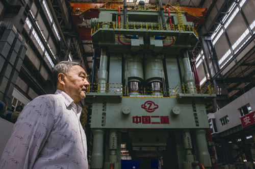二重集團的老工程師,建造“大壓機”是他們幾十年的夢想。 熱血鑄就錘八萬 2006年1月,獲悉“大飛機”啟動,二重集團將作為航空制造業保障技術的“大壓機”作為“一號項目”。 大型化、精密化、整體化、輕型化的航空模鍛件時代早已來臨,但國內始終沒有稱心的“大壓機”。 陳曉慈在寒風中帶隊進京,希望爭取項目,但“踏破鞋襪,備感心冷”。 陳文記得,申報團隊針對不同的評審部門寫了幾十個版本的申報方案;二重集團技術中心副主任王月喬說,那時申報團隊出差連打印機都要自己帶著。 2007年,另一家項目爭取方突然在《人民日報》上發了一則消息,聲稱8萬噸項目已經落戶己方。 陳曉慈大驚,感到“被壓得喘不過氣來”。 他始終堅信自己的申報理由有足夠的說服力:作為國家重大項目,要充分考慮戰略安全,不能在邊境、水壩地區,不能在金融中心與大城市,否則戰略性目標太集中,敵方會降低首次打擊成本。同時,自己還要考慮運輸、安裝成本。所以應該是就地制造、就地安裝。 2007年11月15日,“大壓機”花落二重集團。 陳曉慈吸了口煙,戴上眼鏡,頭微向后仰,右手滑動鼠標,點出當時的技術資料。“一個部件要5個鋼包來澆鑄!” 每個鋼包的鋼水成分必須一致。一個零件要加工一個月,提高效率并不容易,“哪有那么多設備啊?”他的聲音陡然增大。 機器造出來,安裝還是問題。體量巨大的機器要分階段安裝。它的4根支柱有36米高,每根支柱需要5片“C型板”貼合組成,每片重250噸,相當于167輛轎車的總重。 裝完這4根柱子,要用一個月。 龐大的壓力機單位載荷很大。曾有專家考察說,8萬噸的土建,相當于三峽工程的壓力標準。400平方米之內,沉降差不能超過15毫米。為控制沉降,“大壓機”安裝的5個月中,每安放一個部件,都要監測一次沉降量。 由于地下部分施工量浩大,施工中僅降水這一項工程,前后就持續了兩年。 2010年,“大壓機”活動橫梁澆鑄成功,創造了國內最大鑄件一次澆鑄758噸鋼水的新紀錄——這也是目前世界上最重的單個零件。 次年,用于“大壓機”支柱的長達36米的“C型板”整體加工完成,實現了國內超長零件整體機械加工的突破。 2010年12月31日,看到項目進展順利,陳曉慈陡生豪氣,填詞云:“豪情撐起旗一竿,熱血鑄就錘八萬。” 不能受制于人 “錘八萬”被安置在一座巨大的車間里。撳下按鈕,卷簾門緩緩開啟,龐然大物如同電影《變形金剛》中的巨人出場一般緩緩亮相。 這個13層樓高的綠色金屬體,除了擁有目前世界上最重的單個零件,還有世界上最厚的筒形鍛件、世界上單個零件最長的機械加工件、世界上最厚的焊接件……單件重量在75噸以上的零件就有68件,壓機外形尺寸、整體重量和最大單件重量均為世界之首。 當操控臺上的工作人員摁下控制鍵,“大壓機”啟動:巨型工作夾鉗從加熱爐中夾出高溫的合金毛坯件,送上工作臺。與此同時,液壓油從紅色管道注入主工作缸,下壓,工作臺上方的鍛壓錘降下……鍛壓,成型。 這個過程,只需要一個人控制,如陳曉慈所說,“設備越先進,操控的人越少”。 鍛壓可能是多次的:初鍛、中間鍛、再鍛。陳曉慈說,多次鍛壓為的是“凈近成型”。 他說,我們所做的工作就是要控制好“三場”和“三率”。三場是:溫度場、質場、應力場;三率是:材料利用率、加工效率、質量合格率。三場是技術性表現,三率是經濟性表現。 2012年,這臺迄今為止世界上最大噸位的液壓機正式投入使用。師昌緒院士電賀說:“對國防重大裝備的考慮重點是有無問題,不是利用率,否則就要受制于人;再者這種裝備可面向世界,為我國成為機械制造業強國打基礎。” 能夠顯示這部強大機器對于中國重要性的是:二重集團多次得到國家安全部門通報,有人千方百計想混進廠區打探,甚至冒充外媒記者提出采訪要求。 陳曉慈說:“沒有這個東西,中國就不可能有自己的先進戰斗機。裝備上的依賴,可能變成軍事上的依賴,最終變為政治上的妥協。”
