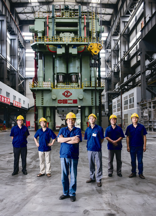 二重集團副總工程師陳曉慈(左三)與幾十位工程師建造了世界最大的8 萬噸模鍛壓機。 重大裝備制造,事關國家命脈、國家安全。在這個領域默默付出的人們,當得起“國家工程師”之名。他們專注的,是代表國家核心制造能力的大國重器;他們的事業,撐起國民經濟的脊梁。在中華人民共和國成立65周年之際,新華網與《瞭望東方周刊》聯合推出大型報道《致敬!國家工程師》,向讀者介紹十個代表“中國創造”的重大技術裝備制造項目以及它們的核心團隊。本期將向讀者介紹鍛壓機工程師,他們鑄造出13層樓高的8萬噸“大壓機”,鍛壓出飛機的起落架、主梁,使中國成為擁有世界最高等級模鍛裝備的國家。 簡單的藍色工裝上衣,更簡單的牛仔褲,輕便鞋子。陳曉慈在狹小的辦公室里,站起來熱情地向我們記者伸出手。他“頗為慚愧”地說,你看我連塊表也沒有,你們都戴著表,都是“表哥”啊! 在德陽,重工之城里的中國第二重型機械集團公司(以下簡稱“二重集團”),副總工程師陳曉慈與幾十位工程師攻城拔寨,終成今日——他們的作品中就包括8萬噸模鍛壓機。 《致敬!國家工程師》之三:鑄造8萬噸“大壓機” 二戰后,飛機作用凸顯,如今軍機對于戰爭結果有決定性意義。但制造飛機起落架、主梁等大型航空模鍛件,都需要得力的“大壓機”。上世紀70年代,美、俄、法分別有了5萬噸、7.5萬噸以及6.5萬噸“大壓機”。 8萬噸“大壓機”的列裝,使中國成為擁有世界最高等級模鍛裝備的國家。 談起“大壓機”往事,二重集團副總經理閆杰對我們回憶:新世紀初,中國工程院院士師昌緒上書國家領導人,建議圍繞大飛機項目的保障能力課題,研制大噸位壓力機。 “大壓機”的夢想開啟了。 一生中要做成一件事 中國和二重集團的“大壓機”夢想,應該回溯到上世紀50年代。 1958年,作為中國三線建設項目、“一五”重點項目,一個名叫西南重機廠的企業開始在四川建造。 在它周邊還有諸如東方電氣、東風汽輪機廠等一大批三線企業——中國領導人希望它們造就“中國的烏拉爾工業區”。 在1964年國務院的一份通知中提到,國家為該廠設計的生產任務是:年產“大型火炮100門(戰時300門),航空鍛件一萬零四百噸……” 原一機部的報告中說:“這是我國自行設計的第一個軍品生產與民品生產相結合的現代化重型機器廠。” 幾番停建,二重廠的銘牌最終被掛起時,已是1971年。這期間如閆杰所述,開始有職工萬余人,后來7000人“淚別二重”。 1965年到二重集團時,一級技術員褚榮國每月可以拿92元工資,10年后才漲了10元。 這位如今82歲的老工程師對我們記者回憶起那時候人們的干勁:“單純,敬業,一分錢獎金也沒有,但晚上設計院燈光都亮著。” 在德陽,他一家三口擠在12平方米的房子里,直到1972年。 生在二重、長在二重的重型機械設計研究院產品工藝研究室主任陳文記得,小時進廠玩耍,在車間門口看鍛工鍛件,“很宏偉”。 原重慶化工廠工人陳曉慈的命運因恢復高考而改變。他的志愿是冶金專業,因為“叔叔阿姨是重慶特鋼廠的技術人員,他們當時都在實驗室穿白大褂”。 1982年進入二重廠的陳曉慈始終是個好學的榜樣,因為證明出了一道老師沒有完成的題目,被老師請吃了一頓東北餃子。 那時候的二重氣氛熱烈。“科學的春天”來了,每天晚上辦公室里都燈火通明,老人們毫無保留地向年輕人傳授知識,人們都希望能搶回失去的時間。 一再承接重點項目的二重集團是“天之驕子”。比陳曉慈晚進廠8年的閆杰記得——作為大學學生會干部,他接新生時發現,來自二重集團的子弟行裝“豪華”——背著大米、香腸和榨菜,并且是從臥鋪車廂下來的。 1989年,最后一屆分配回廠的大學生陳文趕上了中國鍛壓設備輝煌期的尾巴。那時德陽流傳著一句話:“女兒女兒快快長,長大嫁進二重廠。” 輝煌沒能持續多久。1993年,二重集團的項目沒有以前多了,很多人停薪留職下海了。 90年代中期,在新加坡工作的同學可以一年收入二三十萬元人民幣。 1994年,如今的模鍛廠副廠長李蓮川也回到了二重集團,他退伍兵出身的父親看好仍然很困難的企業。 熬到了2000年,“一下子有活干了,越來越擋不住了”。他們也開始與國外合作項目。 也就是在那一年,業內提出要上6萬噸以上的“大壓機”。 消息一出,各地爭搶項目——“這樣一臺機器的影響力、輻射力很大。” 一個典型例子是,“大壓機”花落二重集團后,德陽很快出現了一批航空配套企業。 2003年,二重集團由陳曉慈牽頭,組織團隊申報8萬噸級“大壓機”項目。他們態度堅決:“一定要做出來,也只有我們能做。” 當時二重集團一位領導曾經說,“我們這一代人,一生中有一件事做成了,就值得銘記。