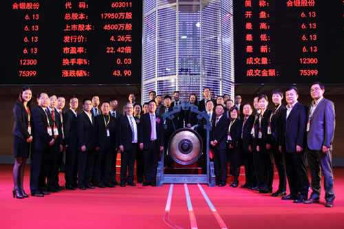2014年11月7日,合肥合鍛機床股份有限公司在上海證券交易所主板成功掛牌上市(股票簡稱:合鍛股份,股票代碼:603011)。安徽省、合肥市、合肥經開區相關領導、上海證券交易所主要領導、合鍛股份主要戰略合作伙伴、本次IPO中介機構主要領導以及公司董事、監事、高管等出席了上市儀式。9點28分,合鍛股份A股開市銅鑼被敲響,隨著瞬間拉升至新股上市首日漲幅的開盤走勢,上海證券交易所交易大廳立刻爆發出了熱烈的掌聲和祝賀聲。至此,合鍛股份迎來發展歷史中的又一重要里程碑。