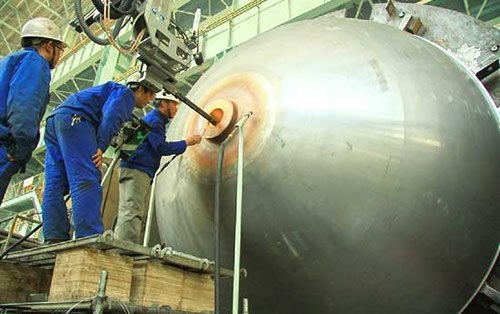 圖為核電容器廠的操作者正在進(jìn)行堆芯補水箱下封頭凸臺內(nèi)壁堆焊作業(yè)。 近日,中國第二重型機械集團(tuán)公司核電石化事業(yè)部承制的核電堆芯補水箱項目的下封頭凸臺內(nèi)壁在核電容器廠點火施焊,標(biāo)志著核電堆芯補水箱項目的生產(chǎn)工序又向前推進(jìn)了一步。 |