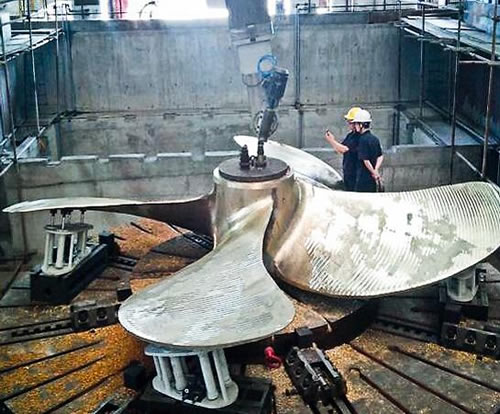 近日,由南高齒機床集團旗下子公司——中傳重型機床有限公司(以下簡稱“中傳重機”)自主研制的世界最大加工直徑七軸六聯動螺旋槳加工機床,在用戶武漢重工鑄鍛有限責任公司現場組裝完成,并按照用戶要求對典型螺旋槳工件進行了試切削加工。該機床各項動作性能指標達到并超越了用戶預期要求,得到了用戶代表、船東代表及中國船舶集團的認可和好評。 該機床最大可加工十一米直徑螺旋槳,并首次采用七軸六聯動方式,加工效率與原五軸聯動方式提高了一倍,加工精度也得到大幅提升。七軸六聯動機床是目前國際上最大型、最復雜的機床。本臺機床的研制成功,展示了中傳重機雄厚的研發制造能力,標志著中國機床企業已具備在國際市場上與世界機床強企同臺競技的實力。 |