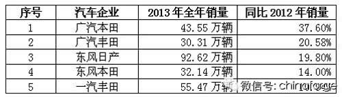 如果要問2013年在中國(guó)市場(chǎng)表現(xiàn)最出色的車企是哪個(gè)?那么一定非長(zhǎng)安福特莫屬。2013年全年實(shí)現(xiàn)了62%的增長(zhǎng),銷量達(dá)到67.9萬輛。2013年對(duì)于長(zhǎng)安福特來說,取得的成就值得肯定,增長(zhǎng)最主要原因之一,就是福特汽車在2013年不斷引進(jìn)新車型,相繼投放了福特翼搏、福特翼虎、福特新嘉年華、福特新蒙迪歐在內(nèi)的7款福特全球車型。雖然這一年也出現(xiàn)了翼虎斷軸事件,品牌形象受到很大損害但也沒太影響銷量。 2、日系三強(qiáng)在華徹底復(fù)蘇 出現(xiàn)不同程度的增長(zhǎng)