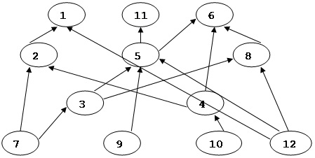 4)各層級分布。 第一層要素集合為{(7) (9) (10) (12)},第二層要素集合為{(3) (4)},第三層要素集合為{(2) (5) (8)},第四層要素集合為{(1) (11) (6)}。 5)結構模型圖,如圖3所示。