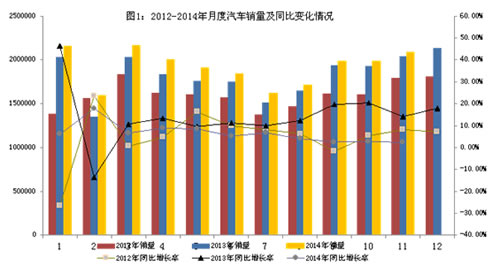 2014年11月,汽車產(chǎn)銷雙雙超過200萬輛,月度產(chǎn)銷基本保持較快增長。2014年1~11月,我國汽車產(chǎn)銷超過2100萬輛,同比分別增長7.2%和6.1%。 一、11月汽車產(chǎn)業(yè)整體保持平穩(wěn)增長 據(jù)中國汽車工業(yè)協(xié)會統(tǒng)計,11月全國汽車產(chǎn)銷分別為216.07萬輛和209.09萬輛,產(chǎn)銷同比分別增長1.2%和2.3%;產(chǎn)銷環(huán)比分別增長5.7%和5.2%。 1~11月,汽車產(chǎn)銷分別為2143.05萬輛和2107.91萬輛,同比累計增長7.2%和6.1%,產(chǎn)銷增幅較去年同期分別下降7.14和7.43個百分點。