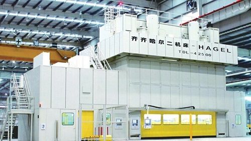 近日,由中國通用技術集團齊齊哈爾二機床(集團)有限責任公司與德國哈格自動化公司合作開發的高端重型2500噸多工位自動沖壓生產線在廣東福迪汽車有限公司宣布研制成功。同時交付用戶的還有800噸落料自動化生產線,另一條3200噸多工位自動沖壓生產線正在調試中。 該生產線應用于汽車薄板沖壓零件的全自動高效加工,具有自主知識產權,各主要技術參數、性能指標達到國內領先、國際先進水平,已被列為國家“高檔數控機床與基礎制造裝備”科技重大專項項目,堪稱汽車沖壓設備的一次變革,對實現國內汽車裝備業的跨越式發展具有重要意義。 在當日的活動慶典上,工信部裝備司副司長王衛明表示,齊二機床著眼中國汽車工業發展形勢,把企業責任與國家汽車工業發展相聯系,產品發展與市場需求相結合,積極消化吸收國外先進技術,為汽車領域用戶提供了全套解決方案,很有價值。 強強聯合 共鑄世界頂級沖壓線 由于70%以上的零件都由壓力機沖壓生產,汽車產品的質量與產能,主要取決于壓力機的水平檔次。近年來,我國汽車工業發展迅猛,產量逐年攀升,車型變化日益加快,對沖壓生產工藝也提出了更高的要求。 目前,我國的沖壓零件大多經由多臺壓機和多副模具后才成形,即由“串聯沖壓線”完成,既有手動生產也有自動生產,典型的節拍為每分鐘4~8個零件。與之相比,多工位自動沖壓生產線具有自動化、高速化、復合化、制件質量高且穩定等諸多優勢,充分體現了當今世界沖壓裝備的發展趨勢和最高水平,并已成為世界著名汽車廠商的首選設備和高檔汽車覆蓋件的必備裝備。