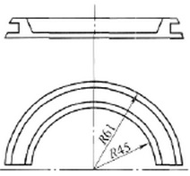 有些模具的變形,單從熱處理的角度來考慮是無法解決問題的,但如轉換思維方式,從整個工藝流程著手,往往能收到意想不到的效果。圖8所示是一半圓形模具,由于形狀不對稱,淬火時會產生顯著的扭曲變形。如在淬火前加工成整體的圓環,等熱處理后再用鋸片砂輪將其切成兩件,則不但降低成本,還可以減少變形。