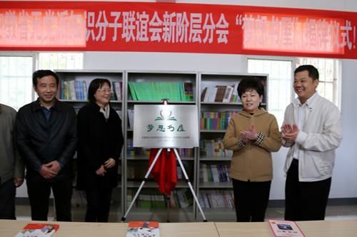 省委常委、統戰部部長沈素琍(右二)、無黨派知識分子聯誼會會長劉榮玉(右三)為小河村紹博小學夢想書屋揭牌