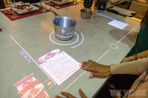 這次的 CES 上還出現了一些關于未來智能廚房的概念展示,這些來自 Whirlpool 的原型展示讓人眼前一亮,如果能夠成功,將會完全改變傳統廚房。 Whirlpool 展示的其中之一是一個概念化的爐灶,整個平面的交互是由人的觸摸或者聲音來控制,界面可以顯示比如菜譜之類的信息,而不需要人們再一邊做菜一邊使用 iPad,用戶也可以一邊看新聞上 Facebook 一邊做菜,這種一體化的智能爐灶界面將人們在廚房的時間和不做飯的時間無縫對接了起來,使兩者不再相互沖突。 Whirlpool 看得更遠的則是,未來廚房并不再需要消耗天然氣等能源,而是依靠電磁發熱,由于電磁發熱只會與金屬產生反應,所以使得整個爐灶界面完全可以拋棄傳統上的設計,就好像一個放大版的平板電腦一樣,可以直接在上面切菜燒飯。 雖然 Whirlpool 的各種展示還只是處于概念階段,但很多人都正在研發類似的技術,據稱 5 年之后即可有相關產品上市。除了新爐灶的交互之外,Whirlpool 也對未來廚房中的物聯網技術信心滿滿,冰箱、洗碗機、爐灶等等能夠相互聯接“溝通”,統一由一個應用控制。 雖然現在物聯網技術還只是涉及到門鎖、電燈等基本產品,但智能家居絕對未來另一大產品類別,下面給大家放一段概念視頻: