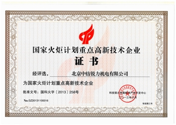 北京中紡銳力機(jī)電有限公司于近日收到國(guó)家科技部火炬高技術(shù)產(chǎn)業(yè)開發(fā)中心頒發(fā)的《國(guó)家火炬計(jì)劃重點(diǎn)高新技術(shù)企業(yè)證書》,公司被國(guó)家科技部火炬高技術(shù)產(chǎn)業(yè)開發(fā)中心評(píng)選為“國(guó)家火炬計(jì)劃重點(diǎn)高新技術(shù)企業(yè)”,批準(zhǔn)文號(hào):國(guó)科火字【2013】258號(hào),證書編號(hào):NO. GZ20131100016有效期三年。 國(guó)家火炬計(jì)劃重點(diǎn)高新技術(shù)企業(yè)由科技部火炬高技術(shù)產(chǎn)業(yè)開發(fā)中心負(fù)責(zé)評(píng)選與管理。被認(rèn)定企業(yè)必須是科技部認(rèn)定的高新技術(shù)企業(yè),評(píng)審指標(biāo)體系從企業(yè)的創(chuàng)新能力、行業(yè)帶動(dòng)性、營(yíng)利能力及社會(huì)貢獻(xiàn)等四方面對(duì)企業(yè)進(jìn)行綜合評(píng)價(jià),重點(diǎn)突出對(duì)企業(yè)創(chuàng)新能力的要求。 中紡銳力于2010年首次被認(rèn)定為國(guó)家火炬計(jì)劃重點(diǎn)高新技術(shù)企業(yè),2013年根據(jù)有關(guān)規(guī)定再次申報(bào)并順利通過審核,此次認(rèn)定是對(duì)該公司持續(xù)科技創(chuàng)新工作的認(rèn)可,中紡銳力將再接再厲,努力打造更多的能夠滿足市場(chǎng)需求的自主知識(shí)產(chǎn)權(quán)產(chǎn)品,為我國(guó)的科技創(chuàng)新事業(yè)貢獻(xiàn)力量。(一川) |