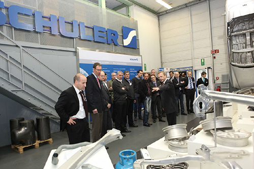 Schuler 采用新激光切線將成熟的帶鋼夾送技術與創新型激光切割技術相結合 抗拉強度可最大可達1000兆帕 在組件從壓力機上取下并進入下一步加工步驟時,其溫度仍然會高達約 200 度。表面上產生的氧化皮需要進一步的噴丸處理或通過有涂層的板材來完全避免。在冷卻狀態下組件在最后會有最大1500 兆帕的抗拉強度,這就是為什么之后必須借助激光或特定工具才能對其進行切割。 因為強度更高,每個組件達到相同級別的穩定性所需要的材料也會更少,于是重量就會下降。與高強度鋼冷成形時不同,它需要的接觸壓力也更小:后者為400 至 1200 噸而前者為2500 至3000 噸。回彈作用也會明顯降低。 所有這些優勢都帶來了全球沖壓硬化件數量的急劇增加,包括緩沖器支架、車頂框架、車門檻、B 柱和變速箱傳動軸蓋板:在1997 年還只需要大約800 萬件,2010年的需求量就達到了1.24 億件。在未來的兩年中,預計對其需求量會翻四番:將高達4.5 億件。 這也歸功于可更精確設定組件特性的技術。例如帶結合板的組件或“定制的回火”工藝。此外Schuler 還參與了德國聯邦教育和研究部推動的“用于有目的地塑造組件特性和提高熱成形過程鏈能源節約的靈活性熱處理”合作項目。這涉及 B柱等組件:它們中間部分的強度應盡可能高,但末端卻要可以變形,以便吸收反彈時的能量。這可以通過帶不同溫度區(可加熱、冷卻或絕熱)的模具實現。